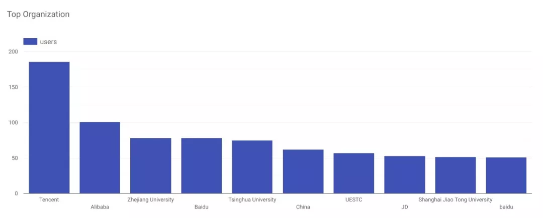 1.7w填了org的用户,主要构成是BAT,接着是浙江和交通大学、这里还能做很多拆分(数据清洗懒得弄了、文末有本报表的链接自己看吧